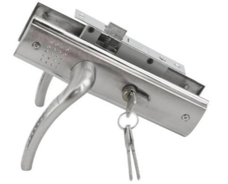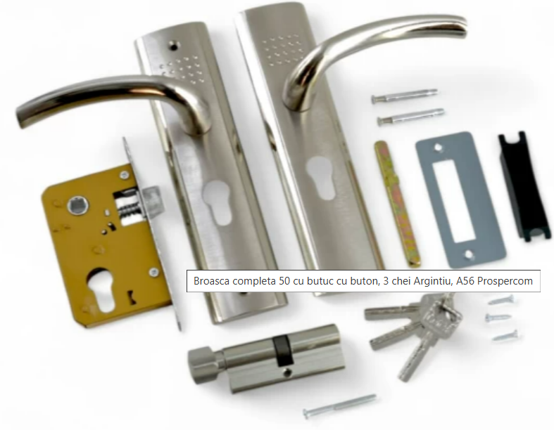 BROASCA USA INTERIOR , INCHIDERE EXTERIOR CU CHEIE, INERIOR CU BUTON, POSIBILITATE MONTAJ STANGA, DREAPTA. SILDURI INOX. SET FIXARE INCLUS.
